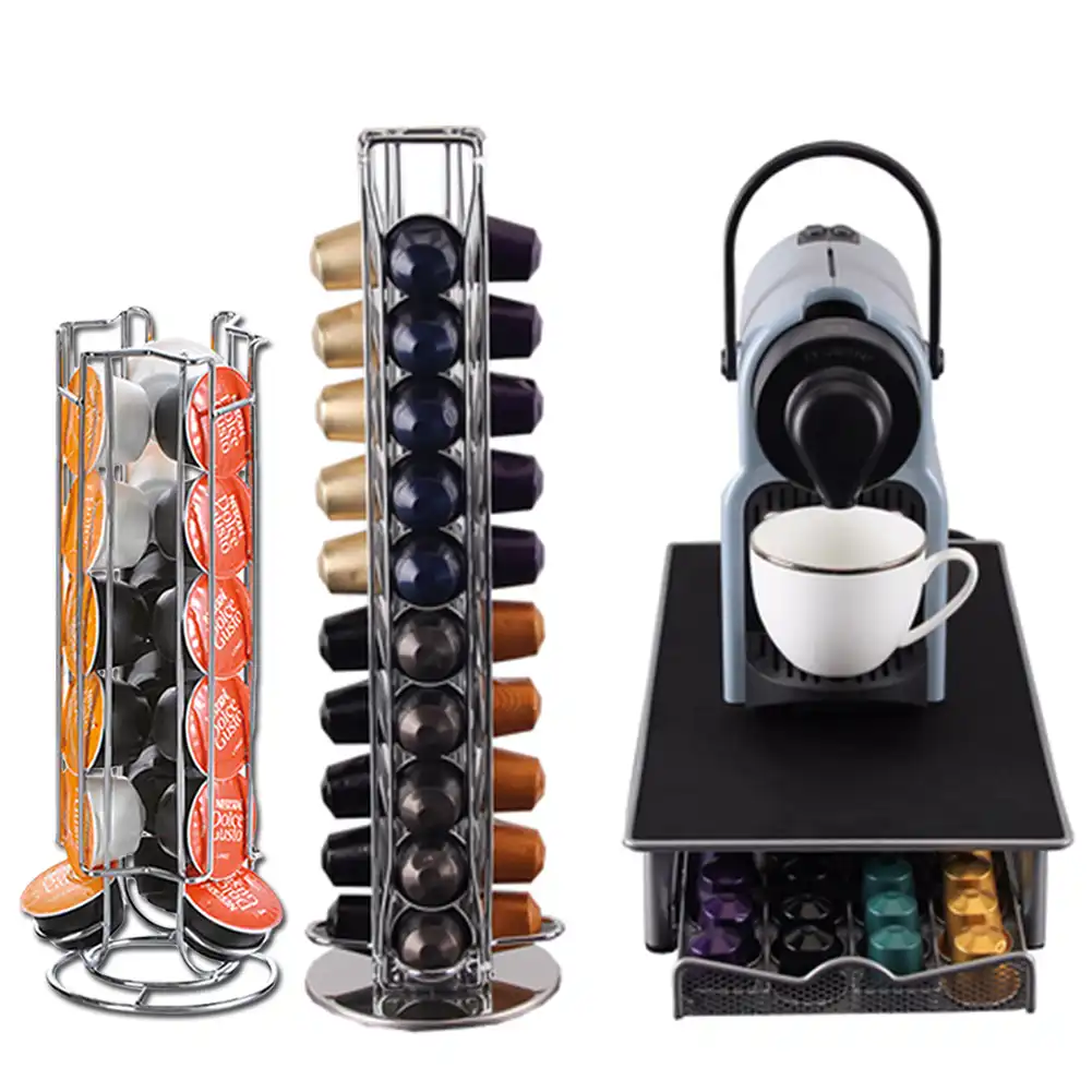 40 18 Rotating Capsule Metal Coffee Pod Holder Tower Stand Rack Nespresso Coffee Pod Holder Capsules Tower Coffee Stand Coffeeware Sets Aliexpress from ae01.alicdn.com A sizable storage drawer that offers ample space for up to 50 coffee capsules, while simultaneously adding to your kitchen's decor. In some cases, the pod holder can add flavor to the brew. This nespresso pod holder's max capacity is about 80 pods. Nespresso machine *see offer details. To restore your nespresso coffee machine to its factory settings, press the right button (the lungo coffee button) and switch the coffee machine off/on with this button pressed. Ships free orders over $39. The machine can process and pierce the capsule independently. Read customer reviews and common questions and answers for koent part #: